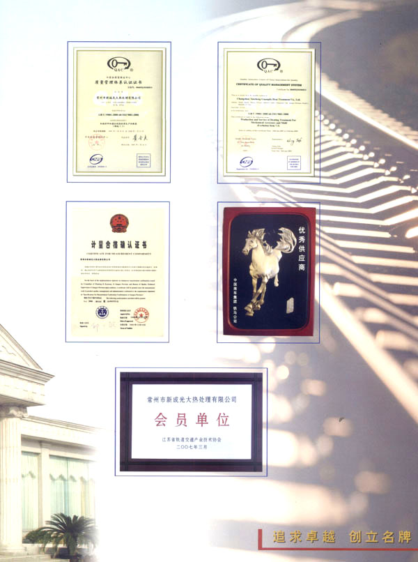 公司現(xiàn)有職工258名,具有高、中級職稱的管理人員20多名,經(jīng)過培訓、考核合格的生產(chǎn)工人200多名。設生產(chǎn)安全部,技術質(zhì)量部,設備動力部,經(jīng)理辦公室和生產(chǎn)車間、生產(chǎn)班組等管理的生產(chǎn)部門。本公司是我市熱處理行業(yè)第一個通過國家質(zhì)量體系認證的企業(yè),同時也是我市軌道交通產(chǎn)業(yè)聯(lián)合會、省科技廳市科技局定點扶持的骨干企業(yè),是鐵道部戚墅堰機車車輛工藝研究所、航空航天部蘇州長風機械總廠定點協(xié)作單位,是國外阿爾斯通、GE公司、三菱重工等多家公司的合作伙伴。