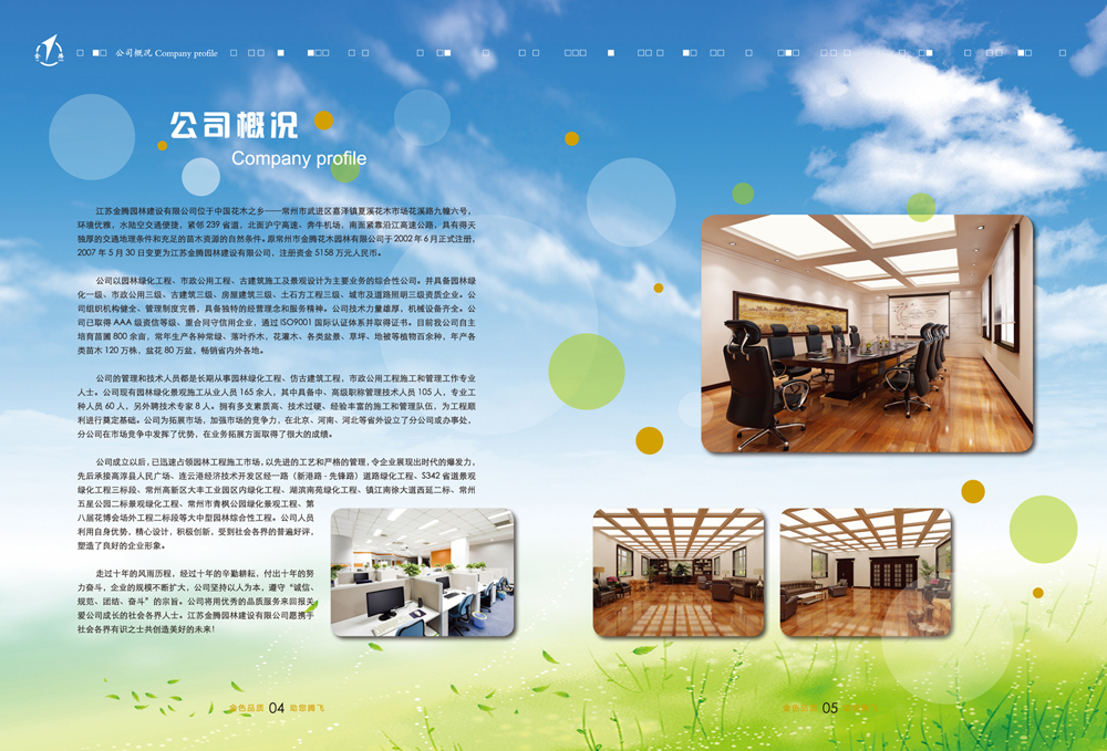 江蘇金騰園林建設(shè)有限公司位于中國(guó)花木之鄉(xiāng)——常州市武進(jìn)區(qū)嘉澤鎮(zhèn)花匯路29號(hào),環(huán)境優(yōu)雅,水陸空交通便捷,緊鄰239省道,北面滬寧高速、奔牛機(jī)場(chǎng),南面緊靠沿江高速公路,具有得天獨(dú)厚的交通地理?xiàng)l件和充足的苗木資源的自然條件。原常州市金騰花木園林有限公司于2002年6月正式注冊(cè),2007年5 月30日變更為江蘇金騰園林建設(shè)有限公司,現(xiàn)注冊(cè)資金為10168萬元人民幣。