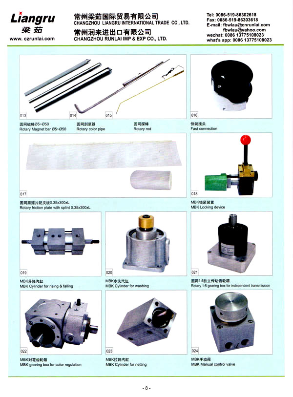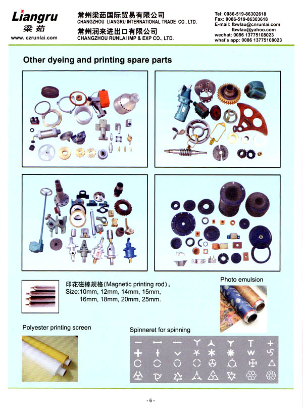 常州梁茹國際貿(mào)易有限公司是國內(nèi)外雙用鋏,T型刮漿片,感光膠, 640軸承,剝邊器,阿托斯滑塊,印花用漿泵,針板座, 印花用圓網(wǎng),印花圓筒網(wǎng),華磁棒,針板,毛刷輪,定型機鏈條, 切布刀片的主要供應商 。我們公司位于常州市,臨近上海,交通十分便利。 我們注重產(chǎn)品質量,價格優(yōu)惠,這是我們成功的原因所在,我司跟配套廠家緊密合作,不斷推出新產(chǎn)品,年銷售額逐年增加。我們的產(chǎn)品涉及化工、機械、紡織印染機械配件。我們熱忱歡迎國內(nèi)外客戶與我司洽談業(yè)務,相信在我們的熱情服務之下能合作成功!