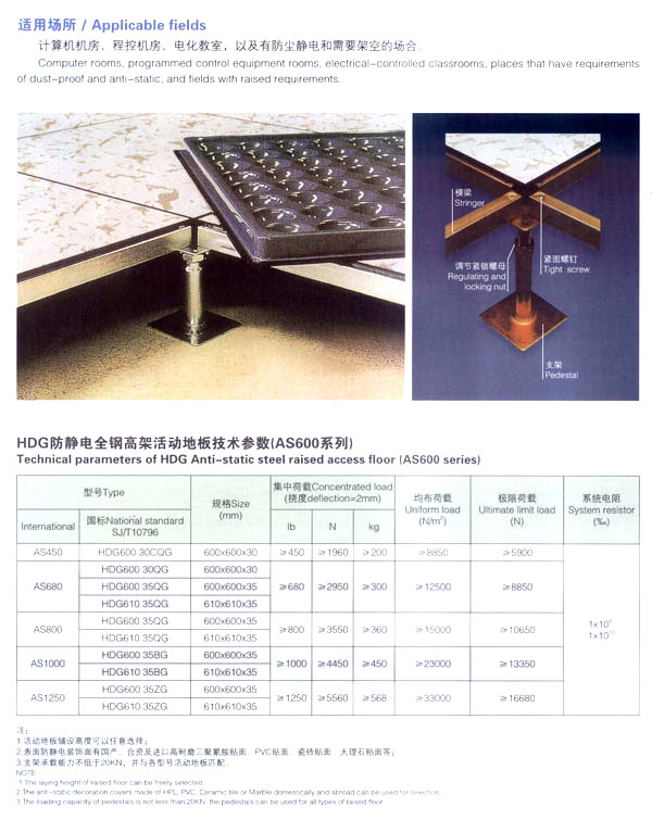 公司生產(chǎn)防靜電鋼質(zhì)、木質(zhì)機(jī)房地板和強(qiáng)化復(fù)合地板及各種電腦操作臺(tái)系列產(chǎn)品。該產(chǎn)品廣泛應(yīng)用于電子機(jī)房、通訊機(jī)房、各類實(shí)驗(yàn)室和管線鋪設(shè)集中的防靜電場所以及家庭、大型商場的裝飾。公司技術(shù)力量雄厚、管理科學(xué),已具有設(shè)計(jì)、開發(fā)、市場營銷及售后服務(wù)的專業(yè)人才隊(duì)伍。