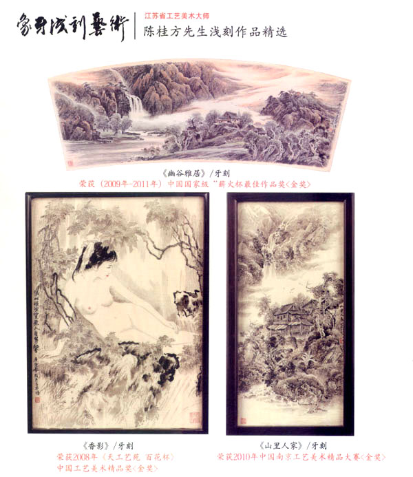 陳桂方,江蘇常州武進(jìn)人,中國著名雕刻藝術(shù)家,江蘇省工藝美術(shù)大師、研究員級、高級工藝美術(shù)師,江蘇省非物質(zhì)文化遺產(chǎn)《象牙淺刻》代表性傳承人。畢業(yè)于中國書畫函授大學(xué),深造于清華大學(xué)、南大美術(shù)系,現(xiàn)任中國工藝美術(shù)協(xié)會會員,江蘇省工藝美術(shù)學(xué)會理事,常州市工藝美術(shù)家協(xié)會副秘書長,常州市工藝美術(shù)行業(yè)協(xié)會常務(wù)理事,武進(jìn)工藝美術(shù)協(xié)會副主席。陳桂方大師淺刻作品的藝術(shù)特點:山水氣韻生動,氣勢磅礴,場面壯觀,刀法細(xì)膩:人物仕女生動可人,栩栩如生,充分表達(dá)體現(xiàn)了中國象牙工藝獨具的內(nèi)在文化底蘊(yùn)和現(xiàn)代社會的審美觀念及獨特的淺刻藝術(shù)表現(xiàn)技藝。對每件藝術(shù)作品創(chuàng)作都精益求精,強(qiáng)調(diào)藝術(shù)創(chuàng)作的思想性、意境及內(nèi)涵。注重章法構(gòu)思,掌握牙刻藝術(shù)的特性表現(xiàn),作品具有鮮明生動的時代氣息,獨具所創(chuàng)工筆與寫意相結(jié)合的牙刻藝術(shù)表現(xiàn)手法和表現(xiàn)形式,出眾、飄逸、多變的刀法技藝,粗獷處見細(xì)微、方寸間見大觀的創(chuàng)作理念深受專家權(quán)威的肯定和業(yè)內(nèi)人士的一致好評。陳桂方大師至企頑事象牙淺刻藝術(shù)創(chuàng)作近四十余載,完善了自己的創(chuàng)作體系,成就了自己獨特的藝術(shù)風(fēng)格。作品數(shù)年來連續(xù)二十多次榮獲國家最高藝術(shù)精品大獎《金獎》,象牙淺刻作品《李逵探母》已被國家工藝美術(shù)館收藏,并頒發(fā)了國家收藏證書,在全國數(shù)十年間尚屬首次。當(dāng)前,陳桂方牙刻藝術(shù)作品已深受廣大海內(nèi)外業(yè)內(nèi)人士、收藏家們的鐘愛、青睞、熱藏,并被譽(yù)為當(dāng)代最杰出最具潛質(zhì)的實力派藝術(shù)大師。