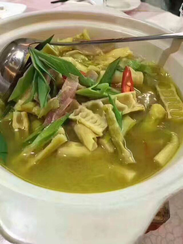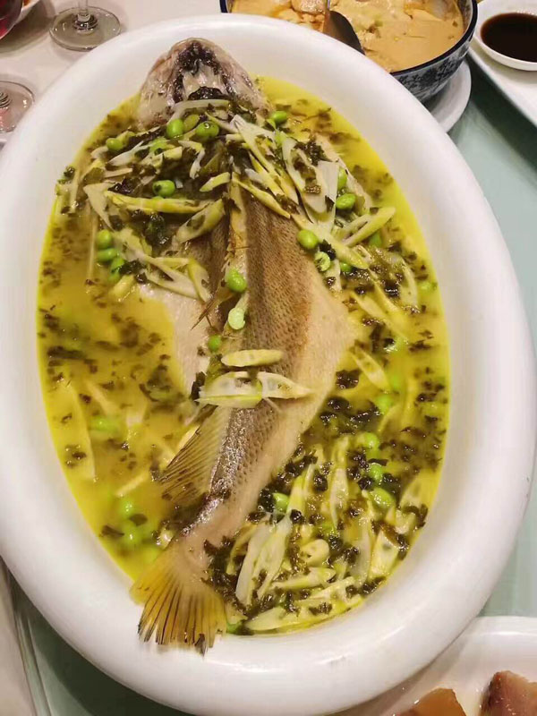 橫林有個地兒叫楊歧村,有句老話叫“上不靠橫林,下不靠洛社”,說的就是那里。 楊歧村過去幾十米就是無錫地界,今天小編推薦的土菜館「三妹農(nóng)家小吃」就在那里。 當小編一路七拐八拐,中午11點半到達那里時,門面雖然很簡陋,但店門口已然停了好多輛車。剛進入店門,就發(fā)現(xiàn)這家店人氣好旺,十幾桌基本都坐滿了。(所以說,人不可貌相,餐館也是如此) "三妹,三妹。⒌昀锟腿私袉韭暡唤^于耳,原來老板娘叫楊三妹啊。你們忙,我們先隨便看看。 過大廳到后堂就是冷菜間,里面有白切草雞、鹵豬干、拌馬蘭等十幾種土菜,尤其那草雞濃郁的香味,讓小編肚子叫得咕咕響。 往前是活貨區(qū),各種鮮魚活蝦一格一格區(qū)分養(yǎng)著,再里面是開放式廚房,每個客人都可以看到,選用的放心食材和調(diào)料。  吃貨老板娘,楊三妹,三妹,從小到大一直有個嗜好,就是愛美味,不光喜歡吃,還喜歡鉆研做。2010年,「三妹小吃」開張,因為獨具特色,在楊歧這個小村一炮而紅。要說楊三妹最拿手的菜是什么,當然是酒糟扣肉。 糟本來就是一種做米酒留下來后,用來吊燒酒的。但是我們常州人很聰明,把糟和肉放在一起,做成一道美味菜,叫酒糟扣肉。 楊三妹的酒糟扣肉之所以有名,得益于母親的悉心傳授。記憶里小辰光,她母親做的扣肉總比別人家的香!冈恪,釀完酒后留下的糟,會與炒熟的新糯米,拌和在一起,陳一年!溉狻,選擇本地養(yǎng)殖的良種豬,沒有臊味。 長大后,她把記憶里的美味延續(xù)了下來。精益求精的她,對扣肉的制作過程要求很嚴格。別人家制作都是把肉直接切大塊,排碗,熬槽,蒸爛。三妹說,這樣烹制,肉汁的鮮美會流失很多,口感減分不少。她的做法是精選新鮮豬五花,整大塊清蒸,保留肉汁的鮮美,之后再切塊紅燒,排碗,熬糟,澆蓋,再蒸。 三妹酒糟扣肉,出鍋后,色澤紅潤,味道鮮美。既有酒的香味,又有肉的鮮美,而且經(jīng)過蒸煮后,油脂都出來了,爽口不油膩。
