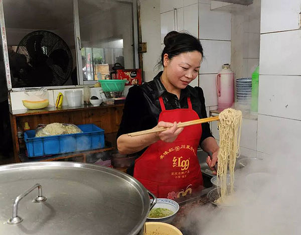 遙觀娟娟面館:青菜香菇雞蛋面 2016年歲末年初,武進區(qū)商務局、武進烹飪協(xié)會、《武進日報》等單位,在全區(qū)范圍內(nèi)開展“武進招牌面”評選活動,最終,遙觀娟娟面館被評定為“武進招牌面”第一名。 2008年,馬玉娟所在的企業(yè)面臨倒閉,她開始謀求自己的創(chuàng)業(yè)之路。第一個想法就是開一家面館,因為妹妹馬小娟喜歡燒菜,親戚朋友吃了她燒的菜,無不嘖嘖稱贊。姐妹倆一合作,店名自然叫“娟娟面館”。 開面館,一面裝修,一面領(lǐng)“衛(wèi)生許可證”、“工商營業(yè)執(zhí)照”;再就是外出求藝學燒菜。姐妹倆兵分兩路:玉娟去學小炒,小娟去學大葷澆頭,不久便開張營業(yè)了。 行家吃面先品湯。娟娟面館的白湯是最樸實的燒法,它用大肉、排骨熬制4個小時,湯色清亮,香氣撲鼻。至于拌面湯,全部都是紅燒肉汁,加上香蔥、雞精等十多種調(diào)料,自然是色香味俱佳。 娟娟面館點單率最高的是青菜香菇雞蛋面,一菜一菇一蛋一湯,樸實無華,價廉物美,老少皆宜,久吃不厭,非常適宜我國人口的營養(yǎng)膳食結(jié)構(gòu)。其中小青菜是當?shù)剞r(nóng)家的家常菜;雞蛋是當?shù)毓麍@散養(yǎng)的母雞所生,味道自然地道純正了。 娟娟面館自開張以來,幾乎天天顧客盈門,高峰時要在門外等候。如今姐姐的兒子和妹妹的女兒都已上陣傳承,并在湖塘鎮(zhèn)馬杭紡織城附近新開了一家連鎖面館,每天要賣出300-500碗各式面點。