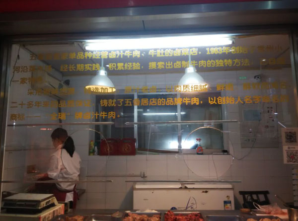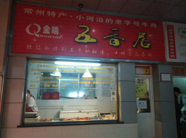 天寧區(qū)五香居牛肉店經(jīng)營(yíng)鹵汁牛肉、牛肚的鹵菜店,1983年創(chuàng)始于常州小河沿菜市場(chǎng),經(jīng)長(zhǎng)期實(shí)踐,積累經(jīng)營(yíng)、摸索出鹵汁牛肉的獨(dú)特方法,已自成一家特色。 采用新鮮貨源,精選加工、原汁原味,以肉質(zhì)細(xì)膩、鮮嫩,口味獨(dú)特成為二十多年來(lái)品質(zhì)的保證,鑄就了五香居店的品牌牛肉,以,創(chuàng)始人名字命名的商標(biāo)——“全瑞”牌鹵汁牛肉。