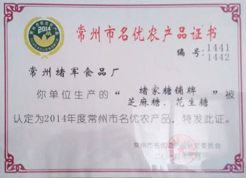 “堵家糖鋪”牌芝麻糖。2013年度生產(chǎn)量已達(dá)100噸左右實現(xiàn)銷量額為250萬元,同時本廠的產(chǎn)品已進(jìn)入“瑞和泰"“好比家”“名仁”常州機場等高端銷售區(qū)域,并與“瑞和泰”形成戰(zhàn)略合作伙伴關(guān)系:為瑞和泰貼牌加工生產(chǎn)。 常州堵軍食品廠生產(chǎn)的芝麻糖是以:大米和麥芽用相傳百年歷史的循環(huán)水濾蒸煮法提煉出其中的麥芽糖漿,再用芝麻,花生,桂花,橘皮,面粉為輔料,歷23道工序手工制作而成。它是一種具有營養(yǎng)豐富性和抗衰老性食品。富含蛋白質(zhì),脂肪,維生素A,維生素B,鈣鐵鎂,卵磷脂,硫胺素等營養(yǎng)元素。 全麥芽芝麻糖是一種獨具地方特色的大眾性休閑食品。有其獨特的地方性和文化性。無論是逢年過節(jié)還是日常生活都是饋贈親友,款待賓客的首選佳品之一。