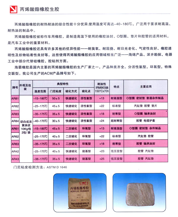 常州海霸橡膠有限公司成立于2005年,位于常州與江陰接壤處的武進(jìn)區(qū)橫山橋鎮(zhèn),西距常州18公里。北距江阻20公里,滬寧高速公公司占地面積30865平方米,其中建筑面積9800平方米,廠區(qū)環(huán)境優(yōu)雅,有山有水,綠化率達(dá)到1 00%,是一座名符其實的江南花園式工廠。 公司堅持“信譽(yù)打天下,質(zhì)量占市場”的企業(yè)運(yùn)營理念,建立,健全現(xiàn)代企業(yè)管理制度,珍視用戶,用“心”為國內(nèi)外客商服務(wù)。全方位整合多種資源,使企業(yè)步入快速發(fā)展的軌道,打造出一流的化工企業(yè)。 公司生產(chǎn)的聚丙烯酸酯系列橡膠,以及丙烯酸酯橡膠混煉膠、乙烯丙烯酸酯橡膠混煉膠、氟橡膠膠混煉膠、氟硅橡膠混煉膠、氫化丁腈混煉膠等。質(zhì)優(yōu)物美,深得國內(nèi)外客商的青睞。 展望未來。海霸人將繼續(xù)以奮斗不息的精神和百倍信心與廣大客戶一起共創(chuàng)美好明天。