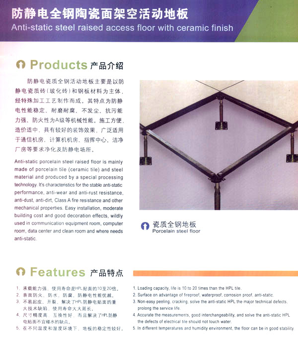 常州天馳活動(dòng)地板有限公司始創(chuàng)于2010年,原身是常州市武進(jìn)區(qū)橫林天馳機(jī)房地板廠(chǎng),地處橫林工業(yè)園區(qū),交通便捷。 公司主要生產(chǎn)和銷(xiāo)售各種機(jī)房地板,自創(chuàng)立以來(lái),以品質(zhì)第一,信譽(yù)第一,服務(wù)第一的理念堅(jiān)持做全國(guó)最優(yōu)質(zhì)量。 防靜電高架活動(dòng)地板是計(jì)算機(jī)行業(yè)發(fā)展起來(lái)的新型鋪地材料,隔離了潮氣,靜電灰塵。最重要的是解決了綜合布線(xiàn)問(wèn)題,無(wú)需預(yù)埋管線(xiàn),可隨時(shí)拆卸,搬移,保證了資訊設(shè)備完整的優(yōu)點(diǎn),適應(yīng)了智能化樓宇中信息自動(dòng)化技術(shù)對(duì)所處環(huán)境的特定要求,避免了廣大客戶(hù)的雙重投資,使現(xiàn)代化辦公程度更加高效,辦公場(chǎng)所更加舒適。 公司專(zhuān)業(yè)生產(chǎn)“天馳”系列活動(dòng)地板,符合國(guó)家安全要求,種類(lèi)完備多樣,其中防靜電瓷質(zhì)高架通路地板除具有普通瓷質(zhì)的裝飾和實(shí)用性外,其耐磨,防水,防火功能優(yōu)于其他同類(lèi)產(chǎn)品,深受客戶(hù)歡迎。 公司大力發(fā)展國(guó)內(nèi)外銷(xiāo)售業(yè)務(wù),多次中標(biāo)國(guó)內(nèi)重點(diǎn)裝飾工程,例:湖南電視臺(tái),寧波縣變電站,鞍山市120急救指揮中心等。 公司將一如既往開(kāi)發(fā)和制造一流的產(chǎn)品,愿與廣大有識(shí)之士合作發(fā)展,共創(chuàng)美好未來(lái)!