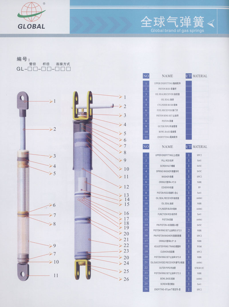 常州市全球氣彈簧有限公司坐落于高新開發(fā)區(qū)南區(qū),占地12800平方米,是專業(yè)生產(chǎn)用于家具,汽車,醫(yī)療設(shè)施以及工業(yè)等各類氣彈簧的廠家。公司擁有專業(yè)的技術(shù)人員和先進(jìn)的設(shè)備,產(chǎn)品大部分出口到國外,產(chǎn)品的質(zhì)量和性能得到內(nèi)外客戶的認(rèn)可和歡迎。 公司還配備了專門研究和開發(fā)新產(chǎn)品的技術(shù)人員以滿足不同客戶的需求。 您的關(guān)注和支持是我們不斷創(chuàng)新和發(fā)展的動力,更好的質(zhì)量和服務(wù)是我們的工作理念,我們將竭誠為您服務(wù)。