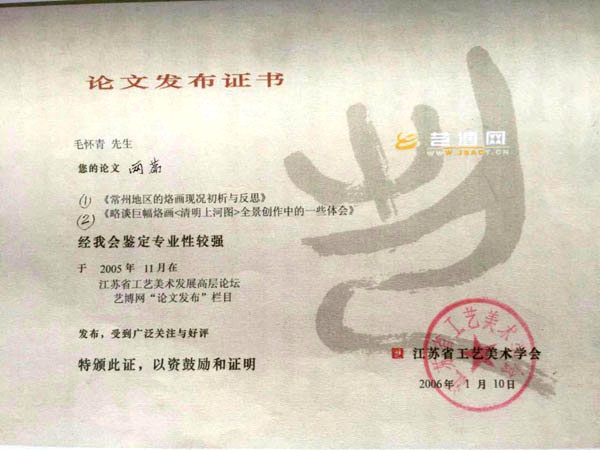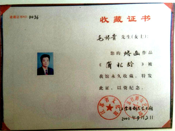 毛懷青,江蘇常州市武進(jìn)人。 中國(guó)工藝美術(shù)學(xué)會(huì)會(huì)員,常州市中國(guó)烙畫(huà)研究會(huì)副會(huì)長(zhǎng),常州市文博鑒賞協(xié)會(huì)理事,非物質(zhì)文化遺產(chǎn)烙畫(huà)傳承人。高級(jí)工藝美術(shù)師。 年輕時(shí)學(xué)習(xí)國(guó)畫(huà)、油畫(huà)中年蔓現(xiàn)掌州咯畫(huà)源遠(yuǎn)流長(zhǎng)、歷史悠久,有著其它美術(shù)門(mén)類(lèi)不具備的藝術(shù)風(fēng)格與特色。可謂是工藝美術(shù)中的一朵十分亮麗的藝術(shù)奇葩,是我民族先人給我們留下的一份不可多得十分珍貴的一份文化遺產(chǎn)。為弘揚(yáng)與發(fā)展這份優(yōu)秀文化遺產(chǎn),我從此下定決心研究烙畫(huà),愿付出一份力量為振興烙畫(huà)事業(yè)做出貢獻(xiàn)。至今已潛心研究幾十年,取得了可喜的成績(jī),被業(yè)界公認(rèn),社會(huì)關(guān)注與認(rèn)可。有“江南烙畫(huà)第一筆”之美譽(yù)。 近年來(lái),創(chuàng)作的烙畫(huà)作品分別獲得過(guò)全國(guó)、省市級(jí)的金、銀、銅獎(jiǎng)多次。中央電視臺(tái)曾兩次播放過(guò)本人的烙畫(huà)作品,江蘇電視臺(tái)、常州電視臺(tái)也曾多次播放過(guò)本人的作品與烙畫(huà)藝術(shù)生涯,揚(yáng)子晚報(bào)、常州日?qǐng)?bào)、常州晚報(bào)也曾多次報(bào)導(dǎo)過(guò)本人的烙畫(huà)作品,出版物有三種版本都能查閱到介紹本的烙畫(huà)從藝生涯與藝術(shù)業(yè)績(jī)。
