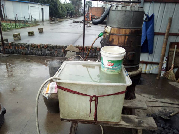 第二步:冷卻降溫,糯米蒸熟后,用冷水淋沐,直至糯米飯溫度降到35℃左右。要知道這個溫度非常關鍵,太冷了會影響之后酒曲發(fā)酵,溫度太高會把酒曲中的酵母殺死。不靠溫度計,老徐靠得完全是自己多年的經驗。