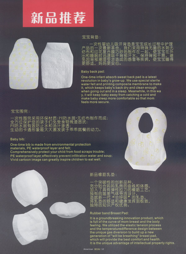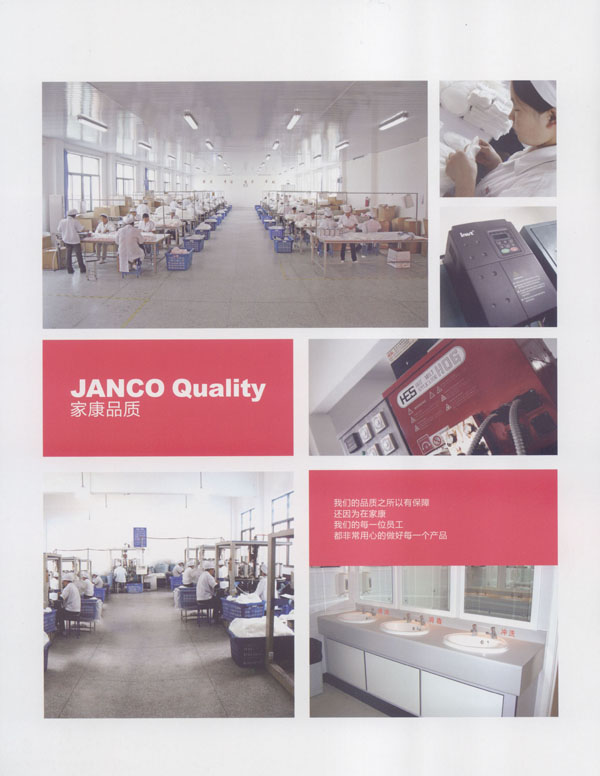 中國(JANCO)家康衛(wèi)生用品公司成立于2004年,我們專注于研發(fā)、設(shè)計、及制造健康的衛(wèi)生用品。我們的產(chǎn)品包括防溢乳墊、汗墊、寶寶背墊、圍兜、護(hù)理墊等。我們的生產(chǎn)廠房建設(shè)在中國江蘇省常州市,這是一個非常美麗的城市,并且我們的廠區(qū)鄰近沿江高速,交通非常便利。 我們擁有國際一流的生產(chǎn)設(shè)備、先進(jìn)的檢測儀器、無菌的生產(chǎn)車間。我們每一個產(chǎn)品都經(jīng)過家康人專心、專業(yè)的制造,我們注重每一個細(xì)節(jié),不斷的研發(fā)更舒適、更健康、更人性化的產(chǎn)品,旨在為您提供更滿意的服務(wù)。我們也可以根據(jù)您的需求研發(fā)、設(shè)計、生產(chǎn)不同的產(chǎn)品。我們的產(chǎn)品已遠(yuǎn)銷海外,并且得到非常好的評價。出口的國家有美國、加拿大、英國、意大利、俄羅斯、南非、泰國等。人性化的設(shè)計、優(yōu)秀的品質(zhì)、完善的售前、售后服務(wù)及合理的價格使我們的客戶與我們的合作感到非常的愉快。 我們已經(jīng)通過了ISO9000和FDA認(rèn)證,我們將感到非常榮幸能夠與您合作。 我們非常樂意與中國的經(jīng)銷商共同分享我們的產(chǎn)品,我們將非常期待您的信任和加盟。 我們將一如既往的為您提供:更舒適的、更健康的產(chǎn)品。