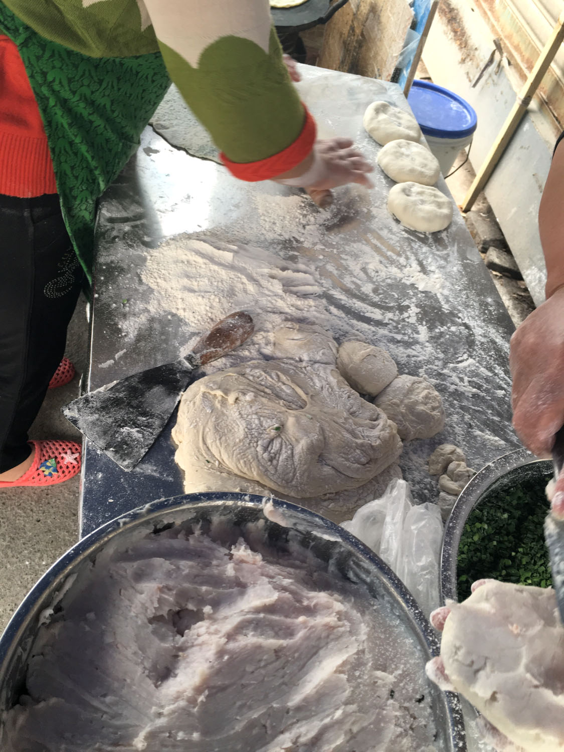 魁元面館,橫山橋江南路,沿街的店鋪。老板娘徐文霞,從公婆手里接過這個店面已有20多年。最具特色的菜品是肉圓跟大排。每天凌晨3點就要起來做準備,菜都是現(xiàn)燒現(xiàn)賣。 特色小菜: 肉圓:有人特意遠道而來打包走 大排面:每天能賣出100來塊大排 大腸 雞蛋:每天煎的雞蛋就差不多300來個 小餛飩、大餛飩 限時供應: 咸鴨蛋、肉粽、蛋黃粽:每天都要包,放爐子燒,在端午前后供應,很好吃。每天都有人打包幾個咸鴨蛋或者粽子拿回家,送人 油酥餅(圖3-4)、糍團餅(圖5-6)、韭菜餅(圖7-8) 油酥餅每天晚上做,涼了更好吃,更酥更脆,里面都是很香的黑芝麻;糍團餅,每天中午擺攤熱了煎鍋開始煎,糯米做成,用菜籽油煎至金黃,餡兒是黑芝麻瓜子仁;韭菜餅是最受歡迎的,每天都有好多人排隊來買。供應時間:每年的4月份到11月份 下午1點到5點半。