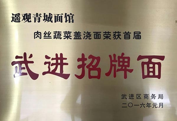武進(jìn)區(qū)青城面館經(jīng)營面積280平方米左右,主要特色是現(xiàn)炒肉絲,素菜蓋澆面,面館創(chuàng)始人今年63歲的王蘭珍,她對(duì)美食有著高于常人的悟性。她開過饅頭店,開過小飯館,承包過食堂,燒菜、取料樣樣在行,吃過的人常常贊不絕口。 20世紀(jì)初,在跟德興面館的老師傅學(xué)了做面手藝后,王蘭珍萌生了開一家面館的想法,除了可以養(yǎng)家糊口,最重要的是想讓更多人嘗嘗自己的手藝。于是,她在自己的住處擺起了幾張桌椅,面館就算正式營業(yè)了。因?yàn)榧易∏喑菢,王蘭珍干脆取名“青城面館”。 “從早上5點(diǎn)多開始營業(yè),到下午1點(diǎn)多打烊,一天至少要賣掉300多碗面,用掉近160斤面粉!睘楹吻喑敲骛^的面條如此受歡迎,兒媳婦陸偉紅說秘訣在于湯頭和澆頭。湯頭分白湯和紅湯,白湯是由10斤豬骨頭熬制而成,湯色清澈而味道濃郁;紅湯以骨頭湯作底湯,加入茴香、甘草、草果等20多種中草藥,以及糖、醬油等調(diào)味品,鮮而不腥,散發(fā)出陣陣香味。 和一般面館事先燒制好澆頭,放在盆里供客人選擇不同,青城面館的澆頭都是一份份現(xiàn)炒的,特別講究食材的新鮮。就拿暢銷的肉絲蔬菜紅湯面來說,要先起猛火,把肉絲、木耳、蘑菇、青菜等食材放一起煸炒至香,然后澆在撈起的面條上。一碗面出來,現(xiàn)炒的澆頭與面條融合,味道香郁至極。 遙觀人的早晨,醒得有些早。對(duì)很多遙觀人來說,美好的一天是從青城面館開始的。那一碗碗現(xiàn)炒的蓋澆面,筋道爽滑、醬香味濃,溫存著他們的胃與記憶,帶來刻進(jìn)骨子里的家鄉(xiāng)味道。