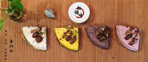 腳踏糕本名“年糕”,按常州周邊地區(qū)的風(fēng)俗習(xí)慣,在春季前夕,各家各戶都要蒸年糕,吃年糕!案狻敝C音“高”,過年吃年糕被賜予“年年高”,一年高一年,鋒吉祥之意,表達(dá)這人們對未來美好生活的憧憬和良好的祝愿。今天小編要帶大家的就是一家至今保持著傳統(tǒng)手工制作的鈺鋒糕點(diǎn)坊。 鈺鋒糕點(diǎn)坊位于常州鄭陸鎮(zhèn)三皇廟范家莊,一個(gè)比較偏僻的村莊,雖然這家作坊不大,但香糯絲滑,軟糯適中,韌勁十足的腳踏糕吸引了無數(shù)的食客。制作一條腳踏糕要從淘米,浸泡,碾粉,鋪粉,一層一層的鋪下去,需要無數(shù)道制作工序,這些都是店主孫煥公公老周,憑著幾十年的經(jīng)驗(yàn),加上店主孫煥從不馬虎的決心! 這“腳踏”也并非赤腳上陣,而是把蒸好的糕倒入早以準(zhǔn)備好的框子里,用布包裹好,上面再用薄膜包好,再蓋上布,再換上專門腳踏的布鞋,踩的時(shí)候要?jiǎng)蚍Q,左右腳要配合好,不然糕會(huì)高高低低,不平整,最后再拿蠟燭線拆成一條小長條,再拿帶包裝好,如此又香又糯的腳踏糕就大功告成了。 店主孫煥為了讓更多的人認(rèn)識(shí)和了解常州腳踏糕的傳統(tǒng)文化和美食,她在傳統(tǒng)工藝中增加了適合現(xiàn)代文化的多種口味,她在糕里加入南瓜,紫薯,老紅糖,大麥汁,血糯米,核桃,葡萄干,紅棗等食材,做出五顏六色,純天然的口味,深受食客們的喜愛,不管是送人還是自己吃都非常新穎。 (重陽糕)重陽糕的由來,九九重陽,九是陽數(shù),也是陽數(shù)中最大的數(shù),九月初九,兩九相重,為之重陽,古人有重陽登高的習(xí)俗。高于糕同意,寓意人活九十九,生活步步高,秋景勝春光,夕陽無限好。夕陽紅成了老人對自己美好的祝愿和希望,所以從某種意義上來講它“祝壽糕”“長壽糕”重陽糕在常州地區(qū)是家喻戶曉的,下面小編帶你去一家至今保持傳統(tǒng)手工制作的鈺鋒糕點(diǎn)坊看一下吧。鈺鋒糕點(diǎn)坊位于常州市天寧區(qū)鄭陸鎮(zhèn)三皇廟范家莊,偏僻的小村莊,雖然有點(diǎn)偏僻,但是每到重陽節(jié)到來,每天還是有很多食客來訂購和購買店主孫煥做的多種口味的重陽糕。要想做出松軟香糯的重陽糕,原材料和糯米和梗米的配比也很重要,調(diào)整好比例開始淘米,浸泡,釓粉,放入糖攪拌,篩粉,糕底部放上荷葉,中間的餡心都是孫煥自己熬制,口感,香糯松軟,店主孫煥為了吸引更多現(xiàn)代年輕人,她在粉里加入南瓜,紫薯,紅糖,血糯等,色彩搭配很出跳,吸引來了很多食客,孫煥2019年開始自愿捐贈(zèng)重陽糕給敬老院,她說這樣的公益活動(dòng)自己很喜歡,雖然金額不大,缺表達(dá)了她的一份心意,并稱這樣的公益活動(dòng)她每年都會(huì)做。