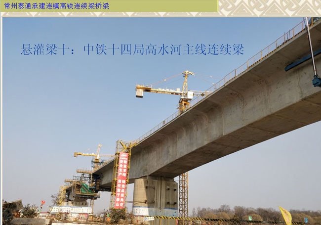 常州泰通勞務(wù)有限公司原常州市武進(jìn)區(qū)前黃恒聯(lián)建筑勞務(wù)工程隊.是一家專業(yè)從事鐵路橋梁、公路橋梁工程施工的建筑生產(chǎn)型企業(yè)。公司現(xiàn)有技7It型掛籃專業(yè)操作手200余人,各類專業(yè)技術(shù)人員及管理人員25人,具有中高級職稱的有2人,施工機(jī)具齊全(尤其是掛籃設(shè)備)能夠滿足各類大型橋梁施工的需要,現(xiàn)與中鐵、中水、中交等特大型企業(yè)形成戰(zhàn)略合作關(guān)系,公司主打旌工鐵路公路上懸灌梁、水下鋼圍堰施工、橋梁鋼結(jié)構(gòu)、斜拉式橋梁等施 工。 憑借專業(yè)熟練的施工隊伍,精干高效的管理班子和優(yōu)質(zhì)快速的履約能力,成立伊始便在同行業(yè)中獲得好評。主要骨干人員先后參與了廈深高鐵四標(biāo)二工區(qū)、廈深高鐵四標(biāo)六工區(qū)、江六高速預(yù)制箱梁橋、寧杭客專長興段、寧杭客專直興段、滬昆高鐵六標(biāo)與七標(biāo)、阜六鐵路穎河特大橋、寧安高鐵姑溪河大橋、寶蘭客?缣於ǜ咚佟⑵104國道改造連續(xù)梁、云桂鐵路南盤江大橋、西安紅光路灃河大橋連續(xù)梁、張?zhí)畦F路承德柳河特大橋連續(xù)梁、常州122省道新孟河大橋連續(xù)梁等國家重點鐵路與交通市政工程的建設(shè),以上工程均以100%的履約率和100%的優(yōu)良率贏得了業(yè)主與合作單位的贊譽(yù)和信任。 為了突出專業(yè)特色,保持競爭優(yōu)勢,公司形成了以承建旌工難度大、技7It含量高的大型及特大型高鐵橋梁建設(shè)為主的經(jīng)營格局,特別是在懸澆(掛籃施工)方面積累了相當(dāng)豐富的施工與管理經(jīng)驗,先后承建了十幾座大跨徑的鐵路橋梁。 集約經(jīng)營、質(zhì)量取勝、滿足業(yè)主、實現(xiàn)雙贏是我們公司的經(jīng)營宗旨,熱忱地期盼能與您攜手合作,鑄就我們共同的繁榮!