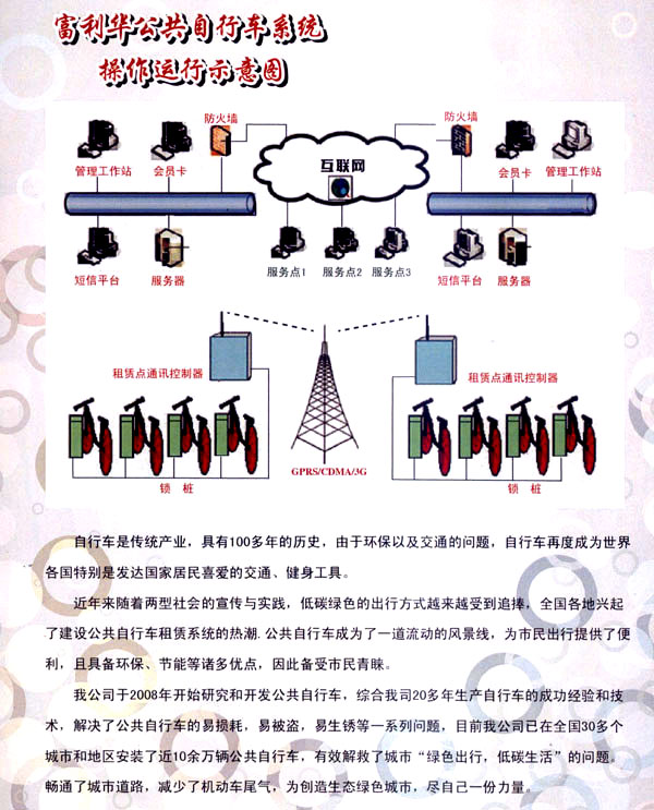 常州市富利華車業(yè)有限公司是中國自行車協(xié)會成員、江蘇省知名企業(yè),自營進出口生產企業(yè)、現(xiàn)擁有固定資產3000萬元,員工400余人,占地面積45000余平方米,建筑面積40000余平方米。 公司引進國外先進的油漆噴涂、架叉生產、整車組裝等設備,擁有油漆、前叉、車架、自行車(電動自行車)裝配、童車裝配、制管等專業(yè)化生產流水線。公司主要生產20”-26”系列普通、山地、城市自行車,12”-20”系列童車,電動自行車,以及12”-26”系列各款式車架、前叉,品種繁多,規(guī)格齊全。 公司注重產品質量,擁有較完善的檢測設施和雄厚的技術力量,井以嚴格的內部管理和產品質量控制體系,完善的售后服務,使產品獲得良好的信譽。目前,“富利華”品牌的自行車、童車、電動自行車年生產能力逾100萬輛,產品暢銷全國各地,并出口國外,深受用戶歡迎。 同時公司還從事公共自行車系列產品的研發(fā)設計、生產制造、安裝集成及運營服務。產品具有很高的性價比。富利華公共自行車系統(tǒng)采用無線物聯(lián)網技術,系統(tǒng)安全可靠,實現(xiàn)各站點互聯(lián)互通,系統(tǒng)可以采用租車卡、交通卡、巾民卡等進行借還車。 常州市富利華車業(yè)有限公司在激烈的市場競爭中敢于迎接挑戰(zhàn),勇攀高峰。竭誠歡迎國內外客商攜手共創(chuàng)美好明天!