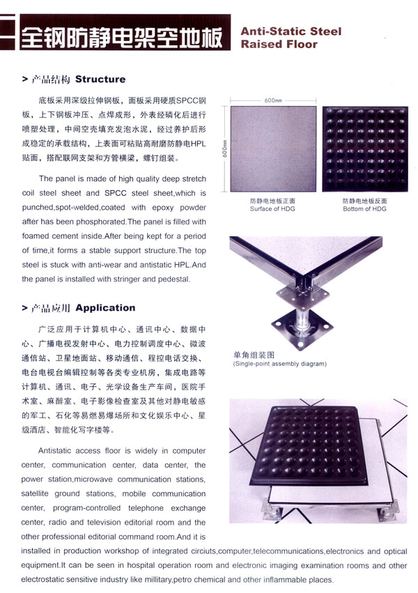 常州市蘇杰機房地板有限公司是高架地板專業(yè)制造商,專業(yè)從事防靜電地板、OA網(wǎng)絡地板等各種系列高架地板的研發(fā)、制造和銷售,并提供各種機房地面和智能化辦公區(qū)地面的整體解決方案。 公司廠區(qū)面積30000平方米,擁有全鋼地板生產(chǎn)線兩條,木基、硫酸鈣基地板生產(chǎn)線各一條,年綜合產(chǎn)能100萬平方米。生產(chǎn)蘇杰牌防靜電地板系列和蘇杰牌網(wǎng)絡地板系列,主要產(chǎn)品有全鋼防靜電架空地板、全鋼OA網(wǎng)絡地板、瓷磚貼面防靜電地板、硫酸鈣防靜電地板、木基防靜電地板、鋁合金防靜電地板、防靜電通風地板等。 蘇杰人秉承“科技先導、市場為本、持續(xù)發(fā)展”的企業(yè)發(fā)展觀,堅持“以先進技術(shù)裝備為基礎,以現(xiàn)代化管理為依托,以專業(yè)化服務為保障”的宗旨,使公司不斷發(fā)展壯大成為現(xiàn)代化的企業(yè)。 蘇杰人堅持“嚴謹思考、嚴密操作、嚴格檢查、嚴肅驗證”的品質(zhì)理念和“以客戶為中心”的服務理念,始終致力于產(chǎn)品的技術(shù)創(chuàng)新和質(zhì)量創(chuàng)優(yōu),為用戶提供優(yōu)質(zhì)的產(chǎn)品、合理的價格和貼心的服務。 常州市蘇杰機房地板有限公司將不斷開發(fā)和制造一流的產(chǎn)品,吸引和培養(yǎng)一流的人才,提供和完善一流的服務,樹立和保持一流的形象,與時俱進,共謀發(fā)展。