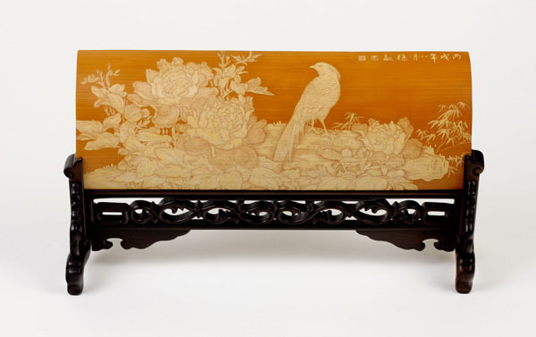 徐敏,一九七四年生于江蘇常州,擅長山水油畫。師從竹刻家范遙青研習竹刻至今有二十余載。其作品受到竹刻權威鑒賞家王世襄認可,并親筆為她題字褒獎,F為常州市非物質文化遺產傳承人。
