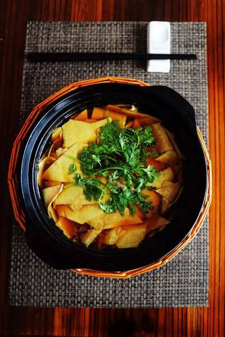 油湯橫山橋百葉 Q嫩爽滑、豆香濃郁的百葉深受老常州人的喜愛(ài),在常州以橫山橋的最為知名。采用太湖灣農(nóng)家散養(yǎng)的土雞熬湯,雞油透亮,雞湯香醇,滿滿一鍋雞味滲透在百葉之中,美味可見(jiàn)一斑。這是一道跨越常州地域,卻結(jié)合常州各地物產(chǎn)的佳肴,也讓往來(lái)食客深深地感受到了太湖美,常州更美。