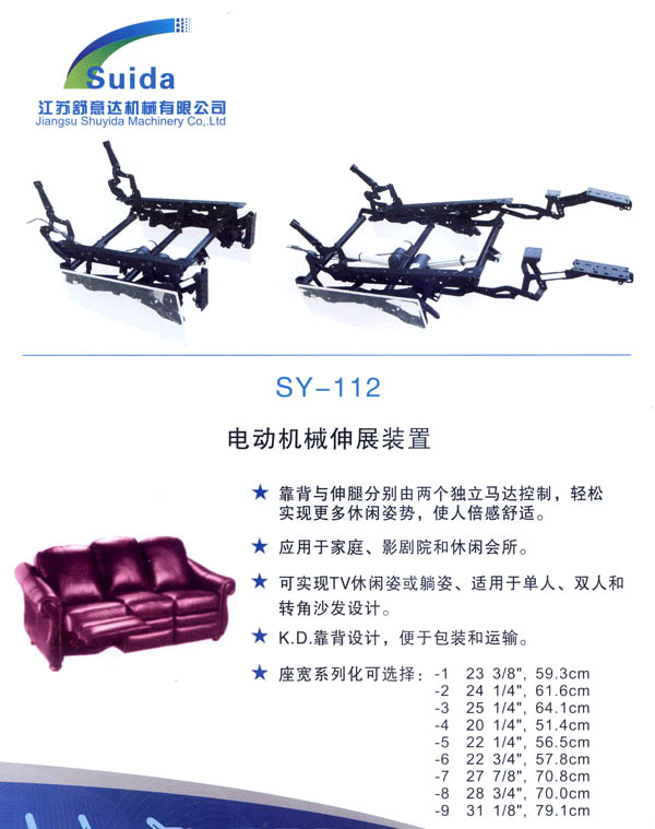江蘇舒意達機械有限公司是一家集研發(fā)設計,生產(chǎn)制造及銷售的專業(yè)家具五金企業(yè)。公司成立于2006年,座落于風景秀麗的江南常州,交通運輸?shù)锰飒毢瘢瑸楹?nèi)外客商的來往交流,洽談和供貨提供了諸多便利,公司占地面積28000平方米,生產(chǎn)廠房面積18000平方米,獨立的辦公樓,擁有良好的工作環(huán)境。 我們的經(jīng)營思理念:堅持以人為本,科技為先,用先進的設備,好的工藝流程制造一流的產(chǎn)品。 我們的口號:保證以優(yōu)秀的品質服務于客人,我們的目標:研發(fā)更多舒適的產(chǎn)品,帶來生活的享受。 公司誠邀海內(nèi)外客商前來指導洽談,攜手共進,共造雙贏。