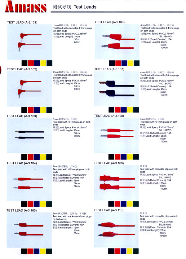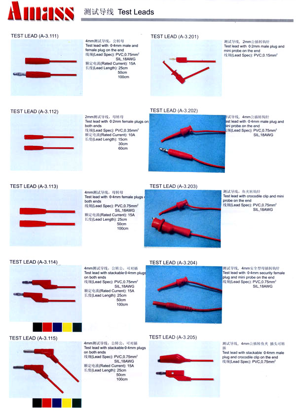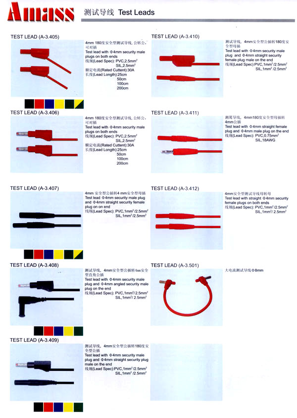 本公司專業(yè)生產(chǎn)各類香蕉插頭,香蕉插座,接線柱,電瓶夾,鱷魚夾,測試導線,測試筆等。產(chǎn)品分2mm/2.5mm/3mm/3.5mm/4mm五大系列,百余種款式, 各種香蕉插廣泛用于儀器、儀表、電力測試、教學、玩具,視聽設(shè)備、醫(yī)療儀器,保健產(chǎn)品等領(lǐng)域。公司技術(shù)力量雄厚,生產(chǎn)工藝先進,產(chǎn)品遠銷港、臺、歐美,并與飛利浦等國際品牌配套。公司本著精益求精的理念,歡迎新老客戶光臨。 我們擁有資深的工程師和豐富的電子產(chǎn)品銷售經(jīng)驗,專業(yè)生產(chǎn)各類電子接插件產(chǎn)品。 香蕉插頭,香蕉插座,電瓶夾,鱷魚夾等品種齊全、 質(zhì)量可靠,致力服務(wù)于通訊、數(shù)據(jù)通信、消費類電子產(chǎn)品、計算機和計算機外圍設(shè)備以及工業(yè)應用等領(lǐng)域,能給客戶提供全面采購解決方案。 我們秉承穩(wěn)健作風、誠實經(jīng)營、合理價格、完善服務(wù)的宗旨,在全體客戶的支持下,公司不斷創(chuàng)新進取,業(yè)績蒸蒸日上,已與數(shù)十家電子零件制造商及其分支機構(gòu)建立密切合作關(guān)系,在國內(nèi)擁有數(shù)百家固定客戶。