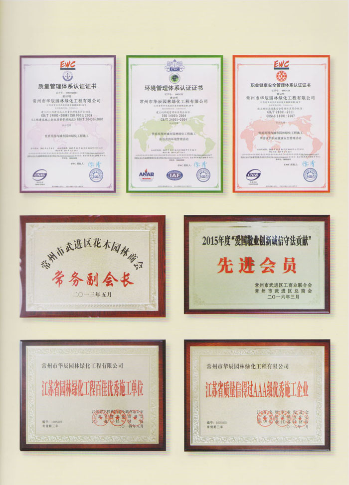 本公司位于江蘇省常州市西郊武進(jìn)區(qū)湟里鎮(zhèn)桃園路28號,東臨風(fēng)景秀麗的西太湖、西靠魚米之鄉(xiāng)的長蕩湖,京滬高鐵、京杭高鐵、京滬高速、312國道、104國道橫貫本地,329省道常溧公路直通公司大門,沿江高速公路湟里出口便可直奔公司大樓。 公司已經(jīng)走過了三十六年的風(fēng)雨歷程;三十六年的勵精圖治;三十六年的艱苦舒奮斗,三十六年的開拓創(chuàng)新,才有了今天這樣生機(jī)勃勃的國家園林綠化壹級資質(zhì)、市政建沒二級資質(zhì)(片配有古建資質(zhì))的綜合型企業(yè)。 改革開放以來,華辰園林始終堅(jiān)持用市場經(jīng)濟(jì)的觀點(diǎn),研究園林,苗木花卉發(fā)展的方向,堅(jiān)持以市場需求為導(dǎo)向,以科技進(jìn)步為動力,緊緊依靠幾百名花卉經(jīng)紀(jì)人長年活躍在祖國的大江南北、黃河流域、長城內(nèi)外花卉苗木暢銷全國二十幾個(gè)省、市,自治區(qū)、園林綠化工程及古典建筑小品遍及全國每個(gè)大、中、小城市華屁園林所轄范圍的花卉苗術(shù)、草坪面積已超過15000畝、近幾年銷售額連續(xù)超過4億元,公司擁有工程技術(shù)人員130余名,其中高、中級工程師、園藝師50余名.技術(shù)過硬、沒備齊全,足有承接全國各類大、中、小城市園林綠化,古典建筑、庭院公園、住宅小區(qū)、公路、道路的園林綠化工程的設(shè)計(jì)和施工能力。從長廊花架到假山瀑布、從地面亭閣至樓頂花園,從室外雕塑到室內(nèi)置景、從民間風(fēng)格的園林建筑到異國情調(diào)的藝術(shù)小品,無論是局部還是整體的設(shè)計(jì)或施工,華辰園林給你的絕不僅是滿意,更有驚喜。這就是華辰園林,她緊隨著時(shí)代的脈膊緊跟國內(nèi)市場需求和技術(shù)的進(jìn)步,以前瞻性的發(fā)展視野,續(xù)寫了園林綠化建設(shè)的新篇章。