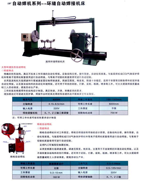中國★常州市巨能自動化設備制造有限公司是專業(yè)生產(chǎn)各種焊割設備和紡織后整理設備及液壓設備的企業(yè),致力自動化設備的工藝研究和生產(chǎn)制造已二十余年,擁有專業(yè)的科技研發(fā)團隊和成套精密的機械加工設備,從每一個零配件加工到整體設備組裝調(diào)試,都有專業(yè)的技術人員和質(zhì)量保證體系。 焊割主要產(chǎn)品有:點焊機系列、縫焊機系列、環(huán)縫焊接機床、凸焊機、排焊機、儲能焊機、對焊機、龍門焊機、太陽能焊接設備和機器人焊接系統(tǒng)及外圍設備等;并為用戶設計制造專用焊接設備。 紡織后整理設備主要有:剪毛機、刷花機、滴塑機等;并為用戶設計制造專用紡織后整理設備。 液壓設備主要有:油壓機、平板硫化機等;并為用戶設計制造專用液壓設備。 本公司集咨詢、開發(fā)、研制、生產(chǎn)、銷售、服務于一體。多年來,產(chǎn)品質(zhì)量,售后服務得到廣大用戶好評。 客戶的要求是企業(yè)的奮斗目標,竭誠為用戶做好售前、售后服務是我們的服務宗旨!
