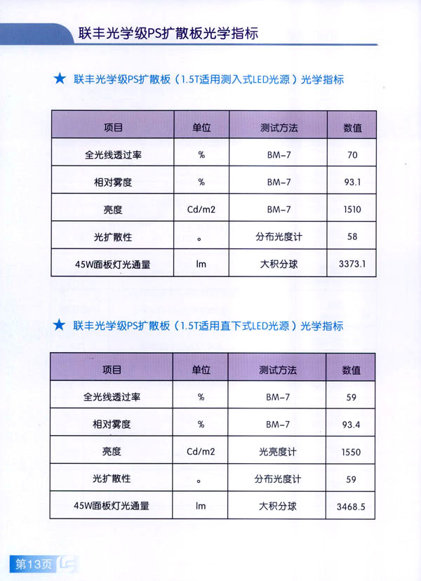 常州市聯(lián)豐(鏡面輥)集團(tuán)成立于2000年,是國(guó)內(nèi)從事板片材行業(yè)輥筒制造的專(zhuān)業(yè)企業(yè)。聯(lián)豐集團(tuán)全資子公司常州市聯(lián)豐光電科技有限公司成立于2013年6月。聯(lián)豐光電專(zhuān)業(yè)從事光學(xué)級(jí)擴(kuò)散板的研發(fā),生產(chǎn)和銷(xiāo)售。擁有各類(lèi)高級(jí)技術(shù)研發(fā)人員10人,生產(chǎn)、管理及銷(xiāo)售人員60人。公司廠房占地面積2萬(wàn)平方米,工廠擁有十萬(wàn)級(jí)凈化車(chē)間,能有效滿(mǎn)足光學(xué)領(lǐng)域擴(kuò)散板生產(chǎn)的環(huán)境要求。公司已經(jīng)申報(bào)江蘇省高新技術(shù)企業(yè)。 公司現(xiàn)擁有全新進(jìn)口PS專(zhuān)用擴(kuò)散板材生產(chǎn)線兩條,月生產(chǎn)能力650噸PS擴(kuò)散板。日本進(jìn)口協(xié)榮裁切一體機(jī)兩臺(tái),月加工能力50萬(wàn)片(32寸擴(kuò)散板)。 聯(lián)豐生產(chǎn)的VFP系列PS擴(kuò)散板能廣泛應(yīng)用于直下式LED,CCFL液晶電視背光模組。產(chǎn)品在很多國(guó)內(nèi)一線TV的背光模組上使用。產(chǎn)品具有高輝度,高擴(kuò)散性,特別適用于超薄背光模組的擴(kuò)散部件,能有效降低成本,節(jié)約能源。 由于LED照明行業(yè)的興起,公司特別針對(duì)于LED面板燈和筒燈開(kāi)發(fā)的LFP系列擴(kuò)散板,在滿(mǎn)足透光率條件下,能最大限度提高光通量,從而增加燈具的光效,受到廣大客戶(hù)的好評(píng)。