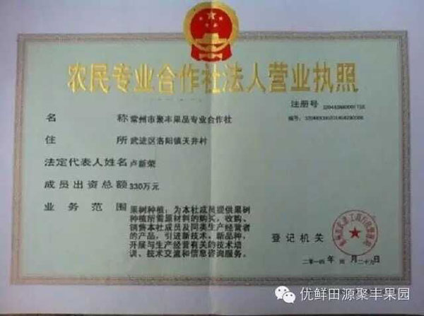 合作社生產(chǎn)的水蜜桃、葡萄在2013年通過(guò)國(guó)家綠色食品認(rèn)證, 2013年合作社生產(chǎn)的“常聚”牌湖景水蜜桃在江蘇省第六屆“神農(nóng)杯”優(yōu)質(zhì)水果評(píng)比中獲得了銀獎(jiǎng)。2012年合作社被常州市工商局和常州市經(jīng)紀(jì)人協(xié)會(huì)評(píng)為“常州市優(yōu)秀經(jīng)紀(jì)人”。合作社與農(nóng)業(yè)部南京農(nóng)業(yè)機(jī)械研究所、江蘇省農(nóng)科院、93學(xué)社等多家科研學(xué)術(shù)單位建立有緊密技術(shù)協(xié)作關(guān)系。合作社創(chuàng)新理念強(qiáng),果品生產(chǎn)起點(diǎn)高,帶動(dòng)范圍廣,運(yùn)作規(guī)范,經(jīng)濟(jì)實(shí)力較強(qiáng),擁有豐富的新品種引進(jìn)、開(kāi)發(fā)實(shí)踐經(jīng)驗(yàn)。