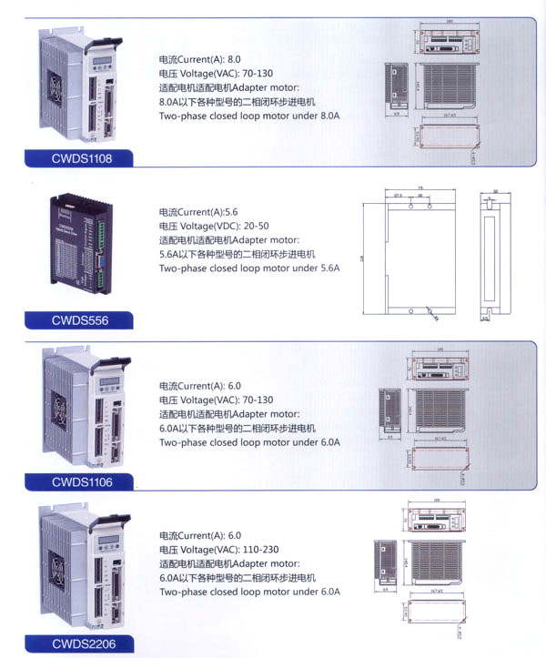 常州創(chuàng)偉電機電器有限公司成立于1995年,是一家專業(yè)從事步進電機及驅(qū)動控制生產(chǎn)、研發(fā)的企業(yè),F(xiàn)已擁有一批富有經(jīng)驗的生產(chǎn)和開發(fā)隊伍。企業(yè)在多年的發(fā)展過程中,為全國各地各行業(yè)提供了大量質(zhì)優(yōu)價廉的步進電機及控制產(chǎn)品。應用領(lǐng)域涉及機器人、音樂噴泉、數(shù)控機床設(shè)備、工業(yè)電子自動化設(shè)備、醫(yī)療器械、廣告器材、舞臺燈光設(shè)備、印刷設(shè)備、紡織機械、計算機外部應用設(shè)備等等。 公司產(chǎn)品先后通過ISO9001質(zhì)量管理體系認證,RoHS認證,CE認證。公司現(xiàn)擁有全自動繞線機、調(diào)壓式充磁機、萬能外圓磨床、數(shù)控機床等設(shè)備50余臺,固定資產(chǎn)3000萬元,員工總數(shù)200余人,其中技術(shù)人員25人。年生產(chǎn)各類電機100萬臺。依靠齊全的檢測設(shè)備、完善的檢測手段、嚴格的質(zhì)量標準,我們一直致力于提高產(chǎn)品的質(zhì)量和性能。對于每一個客戶我們都提供自始自終的技術(shù)服務和產(chǎn)品售后服務。 我公司的主要產(chǎn)品有20BH系列、28BH系列、35BH系列、39BH系列、42BH系列、42BHH系列、57BH圓形系列、57BHH方形系列、60BHH方形系列、86BH圓形系列、86BHH方形系列,以及110BHH系列的四相(二相)混合式步進電。CW60BL、CW63BL、CW70BL、CW92BL系列無刷電機也相繼上市。另外步進電機驅(qū)動器CW215、CW230、CW5045、CW8060、CW6060AC、CW1108以及全新數(shù)字式驅(qū)動器CWD230、CWD556、CWD860H、CW2M2208、CW3M2208和閉環(huán)電機驅(qū)動器CWDS556,CWDS660,CWDS860H,CWDS880L,CWDS1108,CWDS2206等系列也暢銷全球。另外本公司也可對外承接各種步進電機及相關(guān)工控系統(tǒng)的應用系統(tǒng)工程。 熱忱歡迎國內(nèi)外客商前來洽談及合作。