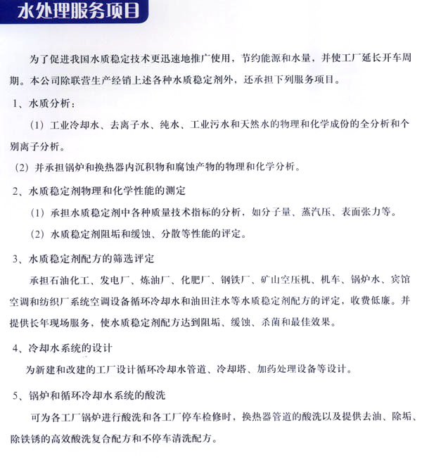 南京化工學院常州市武進水質穩(wěn)定劑廠是集科研、生產、經(jīng)貿、服務、教育于一體的聯(lián)合實體,創(chuàng)辦于1986年。 企業(yè)位于長江金三角,緊靠滬寧鐵路和京杭大運河畔,處于滬寧高速公路之間道口橫山橋鎮(zhèn),距民航常州機場僅半小時路程,交通便捷。企業(yè)占地面積15.7萬平方米,擁有固定資產5000余萬元,員工400余名,其中專業(yè)技術人員占員工總數(shù)的28%。專業(yè)生產“頌歌”牌系列水質穩(wěn)定劑,綜合年產能力3萬噸。 企業(yè)從1995年起先、后被列為國家中型二檔企業(yè),江蘇省明星企業(yè),江蘇省高新技術企業(yè),江蘇省環(huán)保產業(yè)百強企業(yè),化工部化工建設工程標準產品定點生產企業(yè),國家“精細化工星火技術密集區(qū)”重點骨干企業(yè),國家“貿工農”出口商品生產基地。2003年起被評為國家環(huán)保產業(yè)骨干企業(yè)。2004年起“頌歌”商標被評為江蘇省著名商標,“頌歌”牌水質穩(wěn)定劑被評為江蘇省名牌產品。 企業(yè)運用嚴密的科學管理,配有先進的工藝技術和精良的生產裝備,保持高標準的產品質量。所生產的水質穩(wěn)定劑達到或超過國際先進水平,擁有PBTCA等多個江蘇省高新技術產品,DPSC緩蝕阻垢劑被列為國家星火計劃項目,工業(yè)循環(huán)水用新型緩蝕阻垢殺菌劑被國務院評為國家科技進步二等獎。主要產品均通過部、省級科技成果鑒定,連續(xù)十多年被中國石化總公司評定為合格推薦產品。企業(yè)已通過IS09001、IS014001國際質量、環(huán)境認證,為國內外石化行業(yè)、冶金、鋼鐵、化肥、電力、紡織等領域的工業(yè)循環(huán)冷卻水的水質處理提供了必不可少的配套產品。 企業(yè)對外開放,實行全方位合作。自九六年企業(yè)獲得自營進出口經(jīng)營權,水質穩(wěn)定劑產品已銷往美國、英國、澳大利亞、日本和東南亞國家及香港、臺灣等地區(qū),并與之建立了穩(wěn)定的經(jīng)貿合作關系。