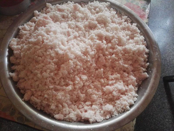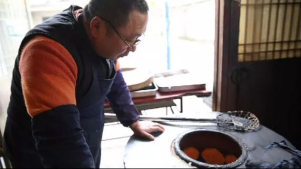 常州大麻糕已經有150多年的歷史,常武各地的麻糕師傅、麻糕店數不勝數,但今天小編要帶大家去的是一家隱藏在背街小巷里,至今仍保持著傳統(tǒng)手工制法的麻糕店。 沈正昌麻糕店位于遙觀鎮(zhèn)東街、國寧寺旁,雖然店門口連個招牌都沒有,卻不妨礙四面八方的食客慕名而來,大伙看中的正是這些純手工制作,原汁原味的大麻糕。如今的店主沈國平已經是沈家第四代做麻糕的傳人了。 秉承著爺爺那輩傳下來的手藝,他們制作的麻糕塊大實誠,用料講究,口感酥軟,深受四周鄉(xiāng)鄰的歡迎!拔覀冞是老法,酥是生板油身擦的,餡里也是生板油摻糖,是真的綠色產品,沒有添加劑,沒有防腐劑,也不用甜蜜素,都是真家伙! 每天凌晨一兩點鐘,沈國平就要去采買當天最新鮮的豬板油,回來清理干凈,和上面粉攪拌均勻,制成面團。麻糕的制作主要由沈國平妻子和兩個姊妹來完成。揉面、搓胚子、配油酥,按餡心、搟均勻,整個過程行云流水,連貫無比。 當爐火燒得正旺,溫度能高達近300度,沈國平就上場了,赤手空拳,一撈一貼,一秒鐘的功夫,就把麻糕貼到了桶壁上。不過幾分鐘的功夫,麻糕就出爐了。經過炭火爐子烤出來的,比一些電烤爐烤出的更香、更脆。