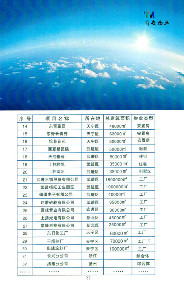 常州市同安物業(yè)管理有限公司注冊1999年,發(fā)展至今已有多年歷史,本公司坐落于美麗的龍城常州,秉承“融聚無限未來”的核心理念,融專業(yè)認(rèn)才,匯優(yōu)質(zhì)資源以”專心,細(xì)心,耐心”的服務(wù)態(tài)度,為客戶打造“安心,順心,稱心”的服務(wù)感受。 公司始終以“打造中國最值得信賴和最值得尊重的物業(yè)管理服務(wù)集成商”為愿景自我鞭策,不斷前行。同安物業(yè)以客戶滿意為終極目標(biāo),不斷加強(qiáng)”崗位資格認(rèn)證能力,人才招聘與職業(yè)化培訓(xùn)能力,產(chǎn)品策劃與管理設(shè)計能力,品質(zhì)監(jiān)督與管控能力,技術(shù)更新與運(yùn)營優(yōu)化力“五大專業(yè)能力的培養(yǎng)和提升,實(shí)現(xiàn)“精品化管理,專業(yè)化服務(wù)”。 公司發(fā)展至今,員工總數(shù)近千余人,大專以上學(xué)歷200多人,中高級技術(shù)人員160人,維修人員140人,物業(yè)管理師80名,公司接管面積達(dá)3100000多平方米,設(shè)涉及住宅小區(qū),別墅,大型游樂場,公園,醫(yī)院,廠區(qū),商業(yè)等。公司的工作管理逐步導(dǎo)入ISO9001質(zhì)量體系和ISO4001環(huán)境管理體系和GB/T28001職業(yè)健康安全管理體系,嚴(yán)格按照質(zhì)量體系的標(biāo)準(zhǔn)執(zhí)行。