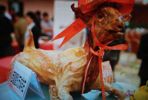 張萬成羊莊一家綜合性的公司,下設酒店,羊產品加工廠,屠宰廠,山羊養(yǎng)殖場。 酒店位于常州西夏墅浦河村,酒店羊宴規(guī)模占地30畝,酒店主要經營特色全羊宴。 一個祖?zhèn)鞯臍⒀虼髴簦瑐鞯綇埲f成,已是第六代了。張家的羊肉,素來以肉質鮮美著稱,張萬成羊莊的主人張建龍是第六代傳人,張家的羊肉素來以肉質鮮美著稱,從常州新北區(qū)沿黃河西路往機場方向直行至羅溪右轉,穿過滬寧高速高架橋后不遠處左拐沿翠屏湖路直走便能看到張萬成羊莊,酒店上下共有三層,2000多平方米經營面積,能同時接待近30桌客人的規(guī)模。有自己的羊圈和屠宰場,每天殺20多只,菜式近100道。光是原料,就從原來羊身上的幾個主要部位,增加到除了羊牙齒以外的一只整羊全部可以入菜。烹制方式,更是在本土單一的燒、炒、煮基礎上,借鑒了東北、廣東、四川等地的烹羊特色,增加了蒸、涮、烤、煎、炸等多種方式。 注重原汁原味的冷菜 白切羊肉:精選羊頸部的活肉精制而成,肥瘦適中,絲毫沒有一般羊肉的膻味,沾少許張萬成羊莊秘制的醬料,口感非常好。 美味羊舌:張家的羊舌感覺是用特殊的醬料腌制過的,咸中略有甜味,口感鮮嫩卻肥而不膩,味道很香。 除了白切羊肉和羊舌以外還有許多冷菜品種,如羊肚、羊心、羊耳朵等。。 火候控制精準的炒菜 炒羊肝:地道的農家風味,與大蒜葉同炒,蒜香濃郁,羊肝鮮嫩,這羊肝可是火候菜,羊肝鮮嫩與否不但取決于廚師對火候的掌握,還在于上桌放置時間的長短,所以羊肝上桌后要盡快食用,看羊肝是否鮮嫩,只需用筷子挑起并輕輕抖動,有彈性者為佳。 美味羊寶:以韭黃、鮑味菇爆炒的羊寶,說是滋補壯陽的一道金貴菜,配料講究的燒菜系列 宮廷燴羊肚:較為金貴的菜品,配菜貴于主料,是以名貴的素鮑和新鮮的筍絲與羊肚同煮,口感濃郁,營養(yǎng)豐富。 海參白燒羊肉:將取自7個月大羔羊身上的帶皮腿肉與海參一同煨煮,菜肴美容滋補,兩種鮮味互相補益達到完美交融狀態(tài),口感甚佳。 魚羊鮮:新鮮的青魚配上羊肉,既有本地羊肉的肥嫩,又有魚肉的鮮香,鮮!鮮!古代人造字就是有道理!”店里可以根據(jù)客人的需要配以魚回魚、鯰魚、鱖魚等。 特色的羊宴點心 羊肉餛飩:羊莊老板自創(chuàng)的羊宴點心,看似普通的油燜跑蛋卻另有乾坤,將蛋掀開便能看見藏于其中的羊肉菜餡餛飩,菜和肉都是自家新鮮的原料,很好吃。 手工搟面:不知道是因為面是真正用手工搟制還是因為加入了鮮味十足的羊湯,總之味道非常好,面勁道,湯也鮮美! 張萬成羊莊的羊湯也是遠近聞名,因為是祖?zhèn)鞯氖炙,做出來的羊湯不腥不膻,香醇不膩,味道十分鮮美,加入粉絲或者面條更是難得的美味。